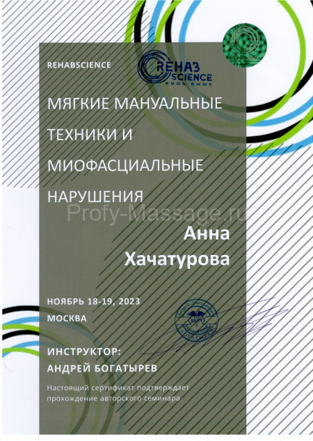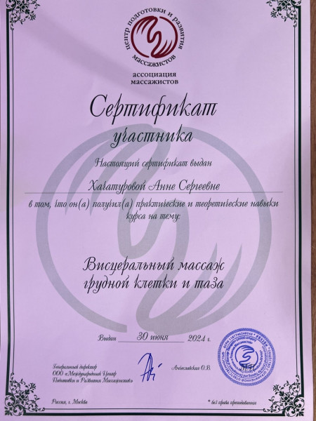 Давайте познакомимся! Меня зовут Анна, я дипломированный медик. Уже 10 лет я практикую массажное ремесло. Начав с классического базового массажа, я научилась работать с организмом на самых разных уровнях. Наше тело – единая сложная система, требующая комплексного подхода и понимания, с чем нужно разбираться в первую очередь. Своим клиентам я предлагаю полную диагностику и разработку индивидуального плана.